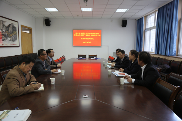 随着国家农业扶贫力度的加强,中国太平洋财产保险公司陕西分公司应对国家战略调整,拓展自身业务,积极探索开展农业领域特别是动物养殖业领域的保险业务研究及创新,将给涉农养殖企业、农户提供更为全面的生产经营风险保障。同时为了拓宽毕业生就业渠道,在实践中培养创新型的畜牧管理人才。经双方协商,本着平等合作、优势互补、互惠互利、资源共享、共同发展的良好愿望,建立全面的校企合作关系。