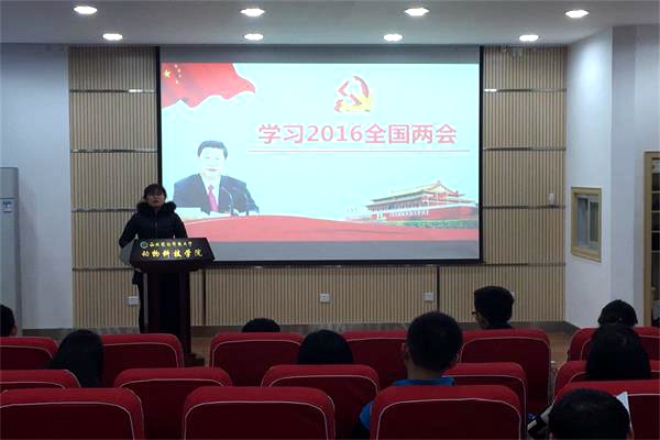 会议伊始,团工委副书记陈晓旭带领学生集体聆听学习了2016年政府工作报告,组织部部长刘兆鹍对两会热点议题做了相关介绍。交流会环节,党员、团学干部畅所欲言,发表感悟。