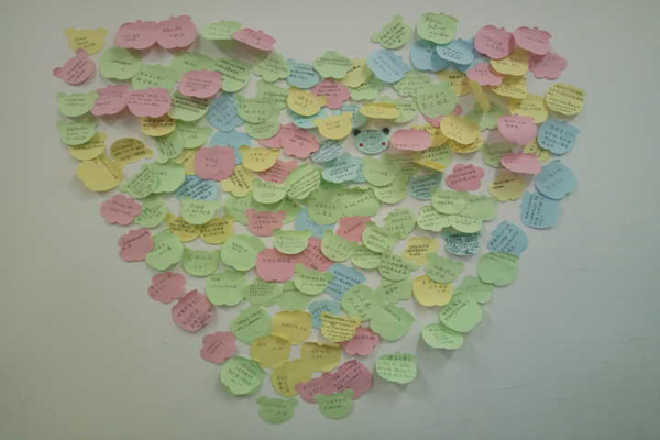 3月3到7日晚,学院志愿者走进教室,开展了以“雷锋精神,志愿文明”为主题的雷锋月宣讲活动。活动中,海角网 2015级代理班主任来到教室与同学们亲切交谈,畅谈雷锋精神,同学们热情高涨,纷纷领取了留言小卡片并写下了自己的所想所感。他们或是表达了对“雷锋精神,志愿文明”的自我理解;或是透露自己将在雷锋月的秘密服务心愿;或是表达自己对雷锋同志的无限怀念。活动最后,同学们自发地将小卡片贴在墙上,并将其构成了一个心型,表达了同学们的赤诚之心与缅怀之情。