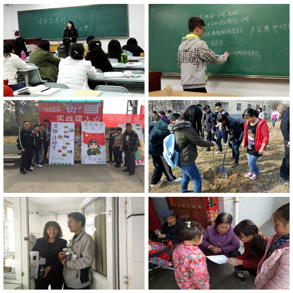 学院村主任助理以雷锋月活动为契机,深入村庄,走进社区,在最基层传播雷锋精神,以实际行动开展志愿服务。半个城村村主任助理张效禹同学、孟竞尧同学每周末都到村庄,帮助阿姨们择菜,帮助田间农夫除草,有时陪村里留守儿童们谈大学生活,有时帮助村委会出黑板报。寨东村村主任助理马锦荣同学、董朝霞同学在植树节周与志愿者们一起在村小学两边小花园、体育场、小菜园里进行樱花树栽植,40棵樱花树承载着志愿者们的汗水与努力。