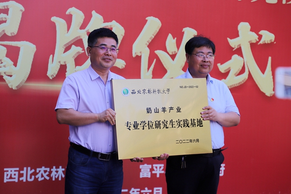 6月29日,富平县奶山羊产业研究院揭牌仪式在“奶山羊之乡”渭南市富平县畜牧发展中心成功举行。我校副校长陈玉林教授、学院党委书记曹军会、副院长(主持工作)姜雨、姚军虎教授、胡建宏教授,动物医学院党委书记吴继东、院长杨增岐教授、马保华教授,信息工程学院王美丽教授,研究生院培养处处长王军、科技推广处副处长韩虎群出席会议。会议由富平县县委副书记、政法委书记亢鹏主持。