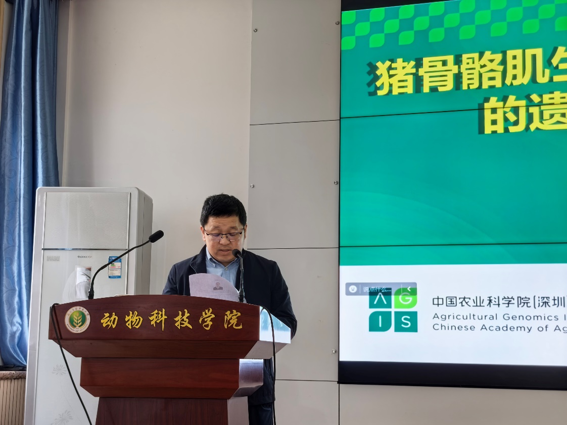 报告中,唐中林研究员围绕中外猪种在骨骼肌发育与产肉性状方面的差异,系统介绍了基因组、泛基因组与转录图谱的构建及相关分析,重点阐述了DNA甲基化、lncRNA、circRNA、RNA编辑及选择性剪切等表观遗传对骨骼肌发育的调控作用及其机制,并分享了单细胞技术在此领域的最新进展。他强调,地方猪种优良特性的开发利用对未来育种工作具有重要意义。报告结束后,现场进行了热烈地互动交流。