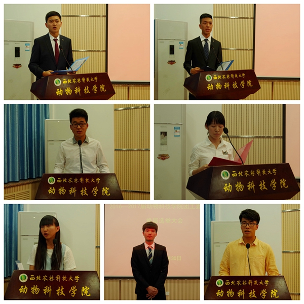 团工委副书记候选人霍丽坤首先感谢两年来在学生会的平台中让自己成长与历练,由于热情所以选择继续坚持和奉献,并希望进一步提高和完善自己,用自己的满腔热血来做好团学干部的精神文明建设和队伍建设;学生会主席候选人李新舟则以反思过去的工作首先做到自省,同时就学生干部团队建设与培养、部门之间的合作与交流、主体工作与创新工作的齐头并进等方面提出了自己建设性的想法与意见,希望通过自己与老师及全体团学干部一起接过接力棒,将团学工作的辉煌及动科精神进一步发扬发展。学生会副主席候选人惠一晴则就海角网 现阶段几个日常管理部门做出清晰分析并提出自己的工作设想,同时表达了自己将继续发挥热量,完善自我,将海角网 团学工作及学生干部团队建设与培养进一步做精、做强。所有主席团及部长候选人上台发表竞职演讲,以饱满的热情和最佳的精神状态以期望继续在团学大家庭中继续奋斗。