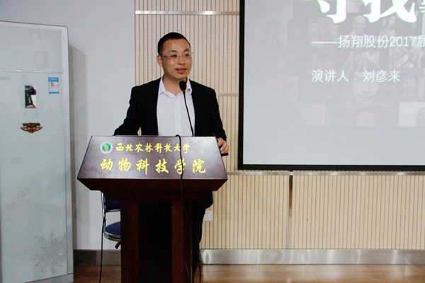 会上,刘经理对扬翔股份有限公司的海角网、发展前景、人才培养、招聘事宜进行简单介绍,热忱欢迎将来致力于农牧行业发展的同学加盟扬翔,一进扬翔门,就是一家人,一握扬翔手,永远是朋友。同时,刘经理针对2017届“扬翔班”招聘事宜进行了详细介绍,他指出扬翔班是扬翔股份有限公司与农业类高校共建的校企合作虚拟班级,已经与国内多所国内知名院校保持了长期的校企合作关系。此次2017届“扬翔班”共招聘技术服务、养殖技术、综合岗位15-20名学员,“扬翔班”学员将优先享受企业提供的暑期培训、日常指导、奖学金、求职应聘等政策资助。最后,刘经理通过分享个人成长工作感悟,告诉同学们成长最快乐的方法是自己不断努力,他希望同学们珍惜在校时间,积极参加实习实践活动,认真学习专业技能,毕业后为农牧行业的发展贡献自身的一份力量。宣讲会结束后,刘经理在学院康达尔俱乐部对来自动科、动医、经管等学院的20余名应聘学生进行了简单的面试。