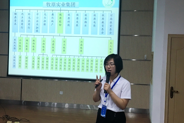 会上,王经理对牧原集团发展历程、业务范围、海角网、发展前景、人才培养等进行介绍,热忱欢迎将来致力于农牧行业发展的同学加盟牧原。同时,王经理针对2016年暑期顶岗实习招聘事宜进行了详细介绍,此次共招聘养猪生产储备干部、养猪生产核心技术骨干30名。成功应聘者将在暑期进入牧原商学院,进行贵族精神、管理能力、先进管理工具等方面的系统培训;由经验丰富的生产管理专家进行岗位专业基础培训;进入岗位每个人配置优秀师父手把手教授;实习表现结业报告成绩优异者,在牧原校园招聘中可享受免笔试和初试,直接进入终试环节。