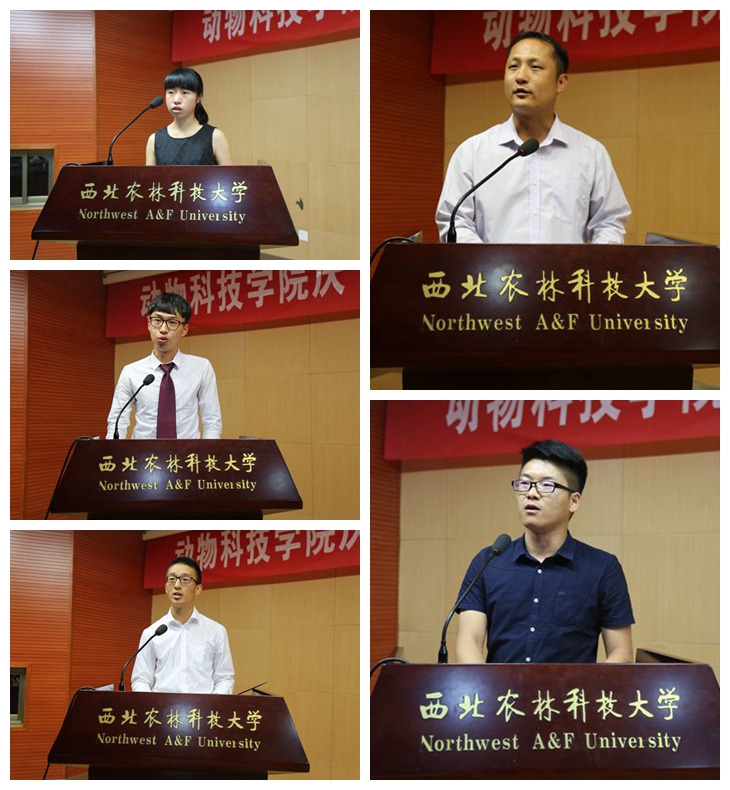 5名毕业生党员在临别之际与在座党员分享了自己的奋斗经历。博士毕业生刘凯严格要求自己,专注科研,求真务实,不断提高了对事物的阅读能力、理解能力和解决问题的能力,磨砺出了扎实的专业能力和系统思维,即将赴陕西石羊集团从事高级营养师工作;硕士毕业生周小兵坚持用理论武装头脑,提升“四个意识”,作为党支部书记和班长,做好上传下达,完成各项任务,积极投身基层一线,发挥好先锋模范作用,签约康姿百德集团年薪18w管理培训生职位;草业121班俞厚林专注专业学业,大学四年排名专业第一,还积极投身学生活动,为全校低年级班级开展朋辈辅导,答疑解惑,受到广泛好评,将以全额奖学金(免学费,额外补助22200加元/年)赴加拿大莱斯布里奇大学攻读硕士学位;水产121班邹春年脚踏实地,甘于做铺垫之事,坚持思考、跑步和阅读,并投身微博协会辛勤工作来展现学校形象,打造西农品牌,最终进入辽宁省清河水库管理局工作;动科126班张创扎实学好专业知识,优化知识结构,加入学生会为同学提供服务,尤其注重实习实践,利用节假日进入多家名企磨练一线工作技能,坚定了在行业发展的信念,即将奔赴陕西正大有限公司从事行业工作。毕业生党员们的不畏困苦、昂首向前、勇于决断和无私奉献精神,深深打动了在场的每一个人。