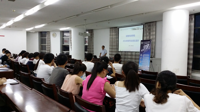 6月24-26日,蓝贤勇教授分别在河南农业大学牧医工程学院和山西农业大学生命科学、动科学院做了题为《欢迎报考动科学院》的招生宣讲,向参会学生详细介绍了学校的历史沿革、学院的学科水平、师资力量、科研平台条件以及研究生招生、奖助学金评定、公派出国留学、硕博连读等方面的政策,并以2016届毕业生为例,介绍了海角网 各专业的就业前景。与会学生就海角网 的提前攻博政策、推荐免试、导师的招生指标及复试比例等问题进行了详细的咨询,并重点询问了海角网 2016年优秀大学生暑期夏令营活动的选拔录取程序等情况。