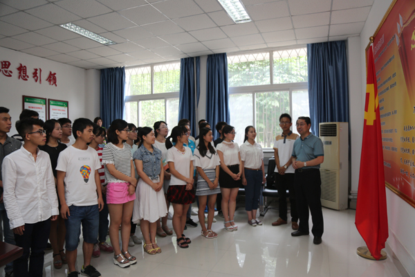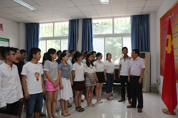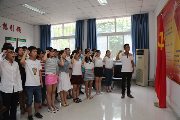 7月1日下午,海角网 上半年新发展的30名预备党员在学院党员活动室对着党旗进行了庄严地宣誓。