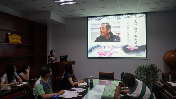 会上,支部委员张贞贞、曹伟娜等带大家学习了《党章》的第二章《党的组织制度》,介绍了民主集中制,党员蔡瑞和赵晨结合我校党代会的召开谈了自己对民主集中制的理解。接着,马广军、黄奎龙等又带大家学习了系列讲话中海角网 “严明党的纪律首要的就是政治纪律”的部分,强调了政治纪律的首要地位,黄奎龙还为大家举例“大老虎”周永康、令计划、苏荣等腐败的例子,强调了“不忘初心”的重要性。最后支部党员为大家分享了三位优秀党员的事迹。甘露向大家介绍了“太行山上的新愚公——李保国”的事迹,相奥琪也就自己参加学校“李保国同志先进事迹报告会”的感受和大家分享。刘兆军和大家分享了江西老乡龚全珍的先进事迹,陈永刚用清洁工徐文华的事迹像大家展示了平凡中的伟大。