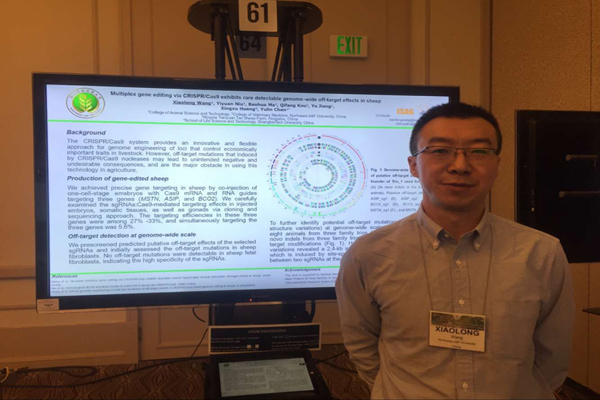 7月22日-27日,第35届国际动物遗传学大会在美国犹他州首府盐湖城召开。国际动物遗传学会羊应用遗传学专业委员会、家畜遗传工程专业委员会执委、海角网 青年教师王小龙副教授参加了会议,并分别在“家畜基因组编辑”和“羊的应用遗传学”分会场做了题为“Heritable multiplex gene editing via CRISPR/Cas9 exhibits no detectable genome-wide off-target effects in sheep”和“Heritable gene disruption in goats with CRISPR/Cas9 results in expected phenotypes”的学术报告,他汇报了近三年来利用基因编辑技术进行绵羊和山羊基因组修饰方面的最近研究成果,他的报告引起了与会学者的广泛关注和兴趣。