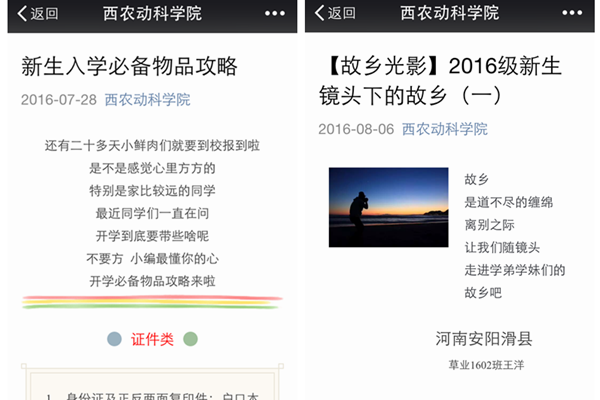 官方微信新生系列推送