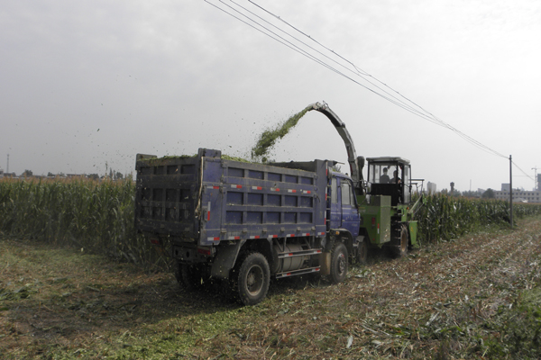收获自产青贮玉米现场