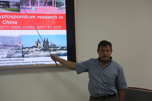 9月6日,德国科隆大学、青海大学国家“人才项目专家”入选者Panagiotis Karanis教授和青海省畜牧兽医科学院马利青研究员应海角网 陈玉林教授邀请为我校师生分别作了题为“The new era of Cryptosporidium research in China”和“Cryptosporidium and Giardia in drinking water reservoirs and slaughter house waste water in the Qinghai Tibet Plateau”的学术报告会,报告会由王小龙副教授主持。