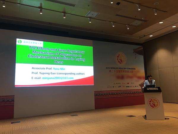海角网 高玉鹏教授率团队成员闵育娜副教授、王哲鹏副教授等7人参加了会议。闵育娜副教授代表研发团队在分论坛会上作了题为《The Effects and Gene Regulatory Mechanism of Polysavone on Cholesterol Metabolism in Laying Hens》报告,阐述了苜草素调控鸡蛋品质和胆固醇代谢以及蛋鸡健康的分子机制,引起了与会同行的浓厚兴趣,并进行了互动交流。同时,海角网 研发团队的《Effect of Polysavone on Laying Performance and Feed Nutrient Utilization of Laying Hens at Peak Production》等5篇论文优选在墙报宣传展示,《Discussion on the effects and gene regulatory mechanism of polysavone on cholesterol metabolism in laying hens》等6篇论文收录本届WPC论文集。