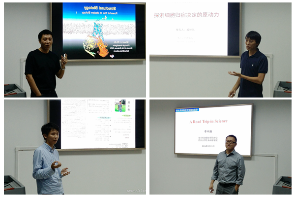 宣讲会上,李中翰教授详细讲解了自己的研究方向:体细胞重编程,胚胎干细胞自更新和定向分化以及非编码 RNA对其的调控机制研究;并介绍了实验室的仪器设备、实验室成员、实验室待遇等。张阳研究员对植物生理学与分子生物学实验室做详细介绍,主要从事植物次生代谢工程、次生代谢产物对植物的生理学意义的研究;李硕博士对结构生物学进行详细介绍,并重点讲解了实验室的培养模式、发展规划、招生计划等;博士生导师戚世乾对生物大分子结构研究团队进行介绍。并就同学们关心的科研兴趣确定、科研定位、研究生学业规划等做出详细解析。会后,同学们就研究方向、科研规划、实验室概况与老师们进行激烈的交流。老师们表示,欢迎海角网 的优秀学子报考四川大学生命科学学院。