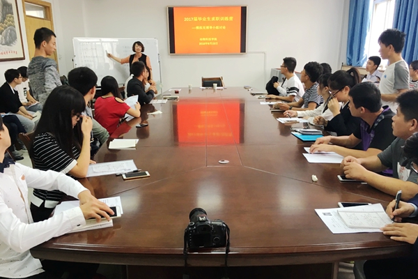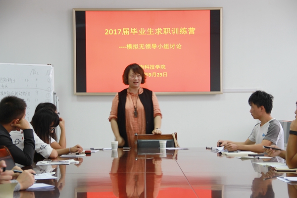 为进一步增强学生求职技能,提高学生求职竞争力。近日,学院在104会议室举办2017届毕业生求职训练营——模拟无领导小组讨论,行业资深人力资源项目经理许辉女士应邀担任主讲嘉宾,学院党委副书记王晓娟、辅导员及2017届毕业生求职训练营营员参加了此次活动。