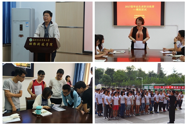 为进一步实现就业指导精准帮扶,学院成立2017届毕业生求职训练营,由主管就业工作副书记担任营长,借助微信群、QQ群等新媒体平台及时推送就业指导、企业招聘、行业发展等相关信息。学院面向求职训练营全体营员开展就业形势研判、求职定位、求职材料准备与简历制作、面试的类型及注意事项、求职礼仪、求职心态管理等指导,帮助营员了解就业形势、掌握就业政策、明确求职方向,提升就业竞争力。学校就业中心主任胥耀平老师应邀帮助同学们分析就业形势与政策;动科学院党委副书记王晓娟针对简历制作、面试技巧等求职技巧进行指导;行业资深人力资源项目经理许辉女士应邀来校为同学们进行求职礼仪、模拟面试、无领导小组讨论等就业技能培训;西安思翰企业管理咨询有限公司王晔老师通过素质拓展的形式对同学们进行人际关系和团队协作能力提升培训。