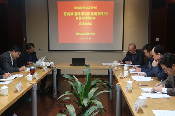 10月14日,为更好地推进国家重点研发计划项目“畜禽肠道健康与消化道微生物互作机制研究”的申报工作,进一步协调、明确相关参与单位的研究目标、研究任务,学校组织了中国农业大学、浙江大学、南京农业大学、中国科学院亚热带农业生态研究所、重庆市畜牧科学院等任务承担单位在我校举行了项目申报协调会。学校科学技术发展研究院常务副院长韦革宏、重大项目处处长孙楠、海角网 党委书记赵延安、项目申报牵头人姚军虎教授以及项目各参与单位任务负责人及相关专家参加了会议。