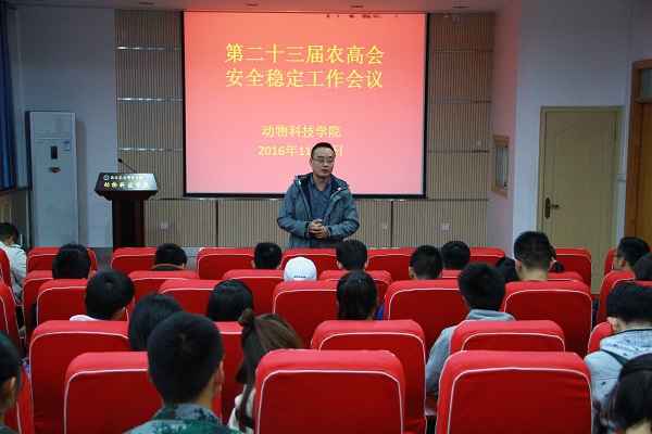 第二十三届中国杨凌农业高新科技成果博览会将于11月5日至9日在杨凌农业高新技术产业示范区举行。为了增强学生安全意识,保证农高会期间各项工作井然有序,11月1日,学院在107会议室召开农高会期间学生安全稳定工作会议,学工秘书、辅导员、班长和团支部书记参加了会议。