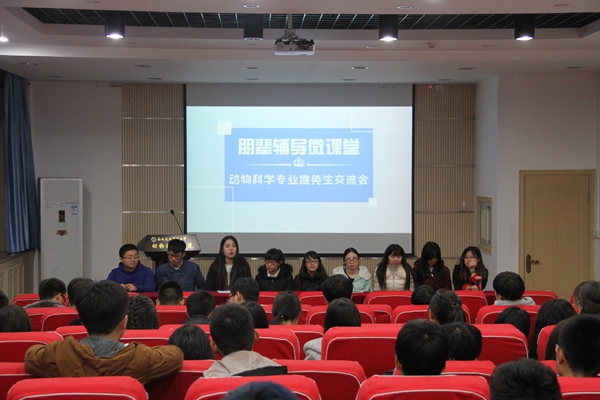 为发挥榜样力量,交流学习心得,11月29日晚,学院于107会议室举办朋辈辅导微课堂之动科专业推免生交流会,9名优秀的推免生与海角网 2014级、2015级近60名学生分享经验,共话成长。