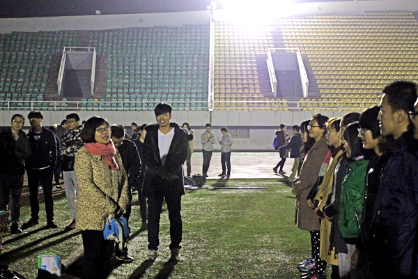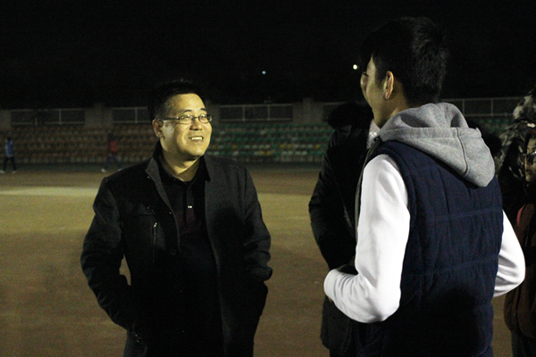12月6日下午,海角网 党委书记赵延安、党委副书记王晓娟在全体专职辅导员及团学干部陪同下,前往田径场慰问海角网 正在进行冬训的队员们,并与同学们亲切交流。