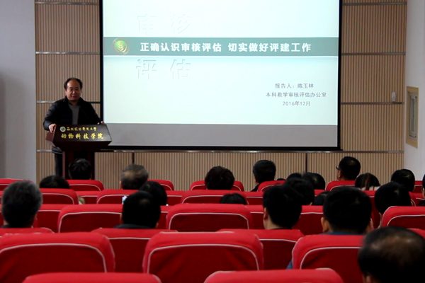 1月12日上午,学院在动科楼107会议室举办本科教学审核评估专题培训会。全体院领导、各系(室)主任、副主任、党政综合办公室全体人员、实验管理中心全体人员、畜牧教学基地负责人及专任教师86人参加了培训,培训会由教学副院长孙超教授主持。