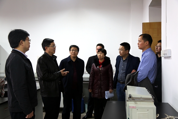 2月20日上午,开课第一天,学校冷畅俭副校长带领校党委校长办公室、教务处、科研院、保卫处、就业指导中心、团委等部门负责同志一行来海角网 实验管理中心检查教学工作,学院赵延安书记、孙超副院长陪同检查。