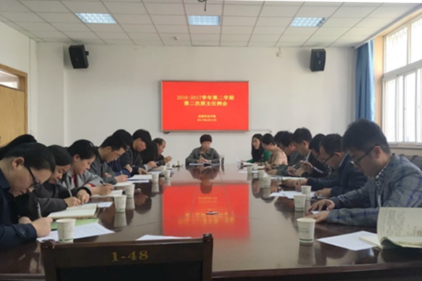 4月13日下午,学院在104会议室召开2016-2017学年第二学期第二次班主任例会。学院党委副书记王晓娟,马克思学院副教授胡尊让,学院全体辅导员、班主任参加本次会议。会议由学院党委副书记王晓娟主持。