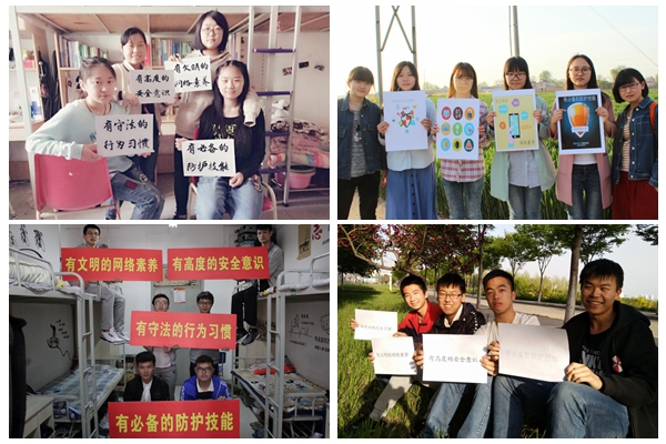 其中,草业1601班13-220宿舍男生们精心制作宣传板,生动形象为争做动科好网民代言;动科1601班2-302宿舍女生们手绘手抄报,展示了青年学子的热情与朝气;动科1606班13-422宿舍男生们更是别出心裁,现场模拟上演了一起微电影。