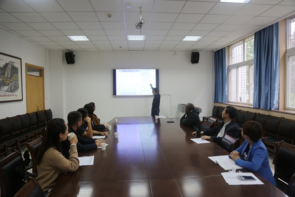 孙秀柱副教授向留学生介绍了学院的基本情况,他主要从学院历史沿革、学科建设、本科教学、科研推广、社会服务、国际交流、科研基地等七个方面进行了讲解,并就留学生提出的问题进行了交流和探讨。