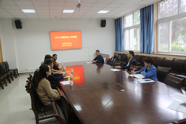 9月26日上午,学院2017级国际留学研究生入学教育活动在104会议室举行。学院院长姚军虎教授、导师代表孙秀柱副教授、在校留学生代表MOHAMED,ABDALLA ELSIDDIG MOHAMED(尹海瑞)、研究生管理办公室人员及2017级留学生参加了本次活动。
