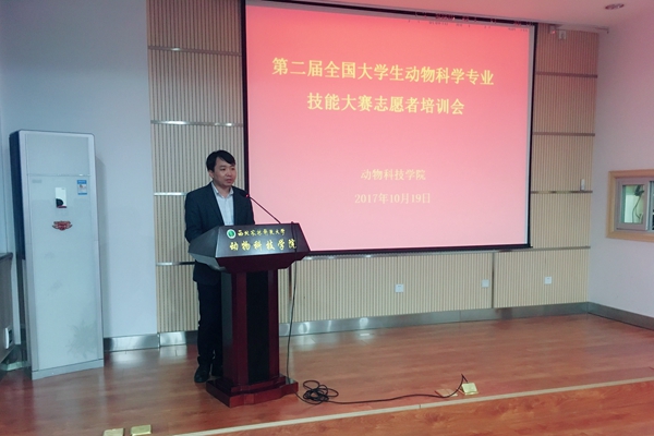 为进一步做好第二届全国大学生动物科学专业技能大赛后勤服务工作、保证大赛顺利进行,圆满完成,10月19日下午,学院在107会议室召开大赛志愿者培训会,教学秘书郭超、辅导员胡巧娟与100名学生志愿者参加了培训会。