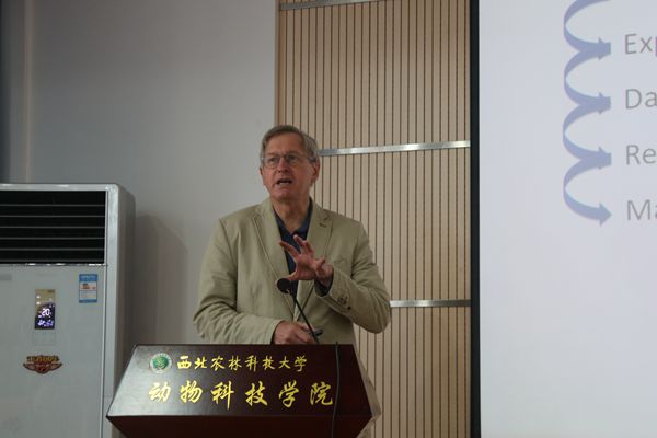 10月19日上午,J.A. Lenstra博士为海角网 师生作了题为“A manuscript, a Message”与“Species composition and environmental adaptation of Chinese cattle”的学术报告。刘建全教授作了题为“Yak adaptation and domestication on Qinghai-Tibet plateau”的学术报告。报告会由副院长昝林森教授主持,海角网 100多名师生参加了此次报告会。