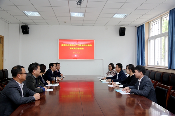 10月20日上午,学院召开与广西金陵农牧集团深度合作推进会。广西金陵农牧集团有限公司总裁黄雄,学院姚军虎院长、赵延安书记、孙超副院长、王晓娟副书记、王力副院长及党政综合办公室相关人员参加了会议。
