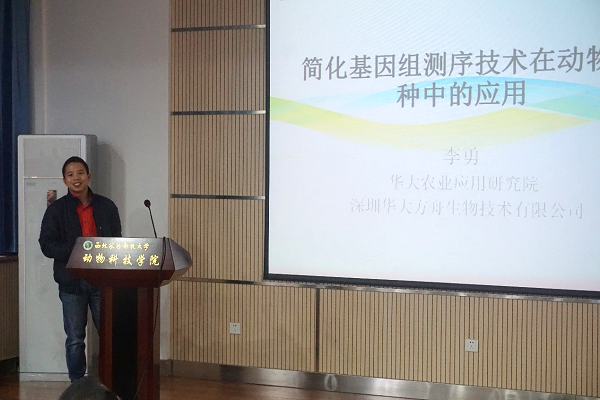 受动物脂肪沉积与肌肉发育实验室杨公社教授邀请,深圳华大方舟生物技术科技有限公司董事长李勇来海角网 进行学术交流,并于动科院107报告厅为海角网 师生带来了题为“基因组学在动物育种中的应用”的精彩报告。