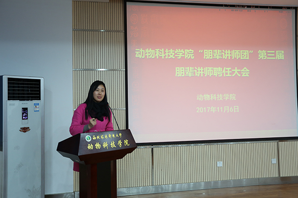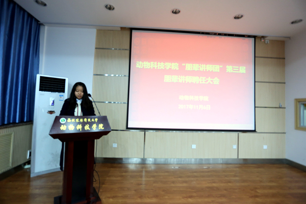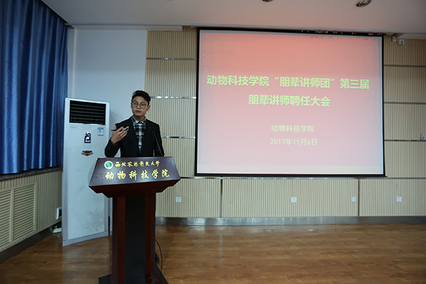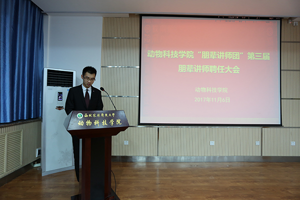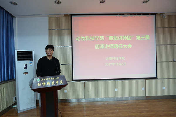 学工秘书胡巧娟首先对两年来学院朋辈辅导工作的发展及取得的成绩进行总结。学院从2015年开始,成立第一届“朋辈讲师团”仅20余名同学作为“朋辈讲师”,主要进行学业辅导,到今年第三届“朋辈讲师团”已吸纳到120余名同学,分设立学业发展组、创新创业组、升学深造组、素质拓展组及党员先锋组五个辅导小组,内容涵盖学业辅导、创新创业指导、升学深造经验分享、社会实践交流等综合能力提升项目,同时今年新纳入学生党员,对特殊群体学生进行针对性“一对一”指导。“朋辈辅导”体系逐渐形成,制度逐渐完善,取得成效显著,得到学生的广泛认可。在2016年成功申报为学校思政工作“精品项目”,得到学校的认可及支持。希望新一届“讲师团”充分发挥志愿服务精神,认真履行职责,做好此项工作;希望同学们珍惜机会,充分利用“朋辈”资源及学院构建的平台,发扬并传承动科精神。辅导员张士军宣读第三届“朋辈讲师团”朋辈的聘任决定。辅导员陈雅婷宣读海角网 “朋辈讲师团”讲师考核管理制度。