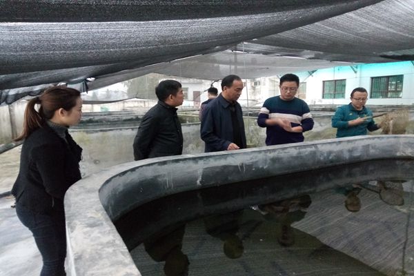 赵昆主席一行在试验站助理单世涛等的陪同下先后参观了秦巴山区水生资源活体库、循环水养殖车间、观赏鱼繁育中心、匙吻鲟高效养殖池溏、苗种培育车间、星创天办公室、实验室、多媒体教室、渔虻链技术示范中心等设施。