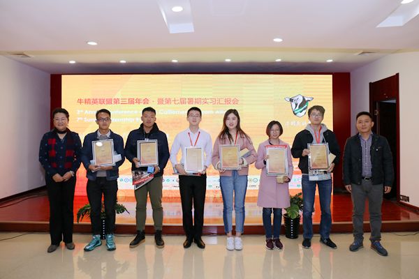 此次“牛精英”年会旨在增强全国高校和相关企业的交流互动,促进企业与高校的结合,为畜牧企业输送更多行业精英。会上,北京首农畜牧发展有限公司党委副书记、副总裁张久迎女士,北京中地牧业科技集团首席运营官宋乃社先生等结合企业用人及学生实习作了答谢报告。参加暑期实习的学生分别汇报了实习的体会和收获。会议为暑期实习优秀的学生颁发了证书,为新聘的“牛精英”指导教师颁发了聘书。