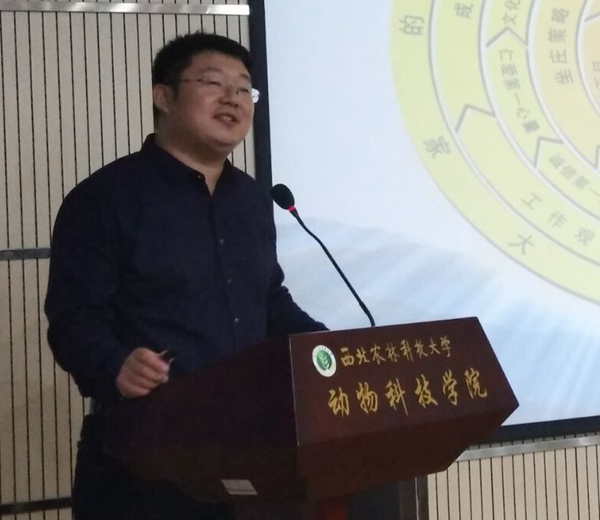 岳宝先生以“投身农业梦,开创新时代”为主题,向同学们展示了十八大以来农业生猪生产业取得的成就,并通过对比中外在猪的基因改良和生产管理上的差距,鼓励同学们投身农业梦,占领科研制高点,立身行道,为国家的农业现代化建设贡献力量。