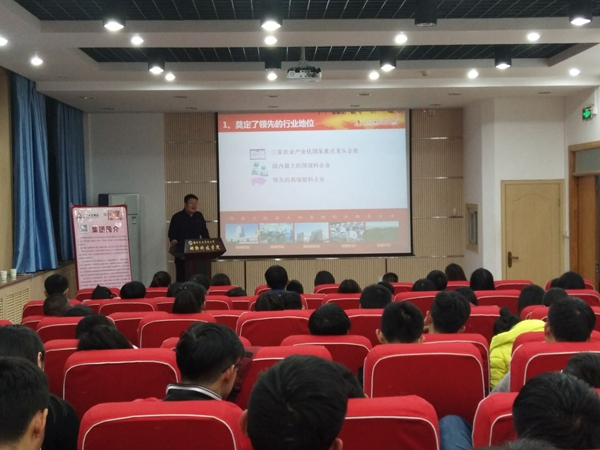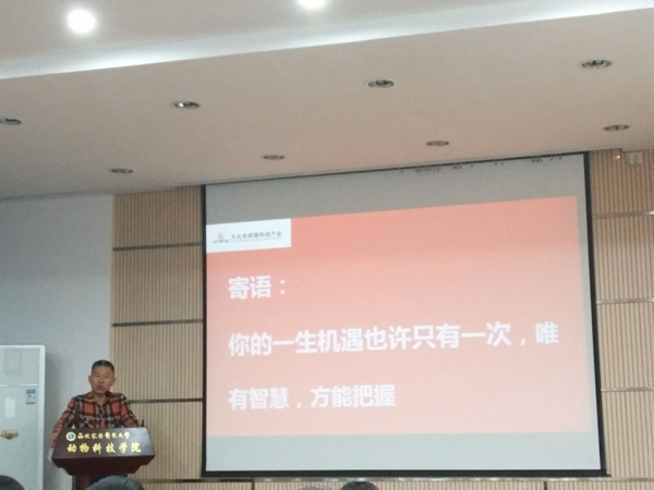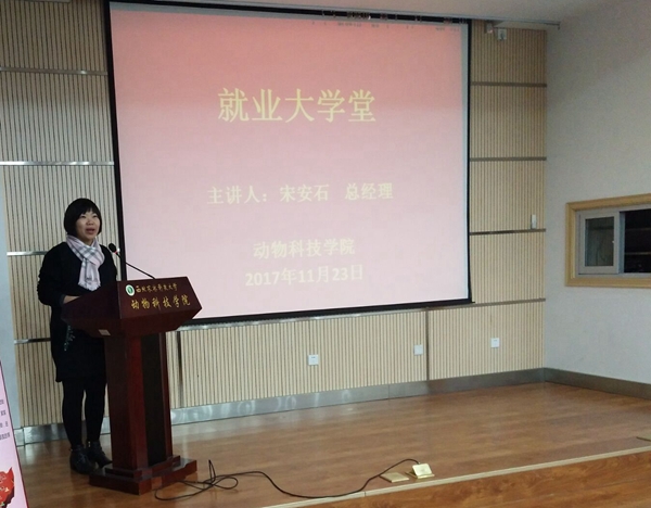 宋安石总经理在宣讲会中以“激情创业赢未来,共享事业新高峰”为主题,对大北农集团的海角网、发展近况、人才培养等进行了简单介绍。他讲到,畜牧行业是朝阳产业,作为动科学子,应该将“畜牧梦”与“中国梦”结合起来,树立远大理想,立志农业兴国,并且要做好顶层设计,学会多角度思考问题。