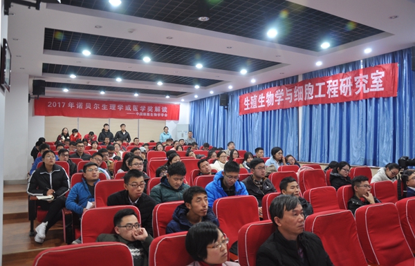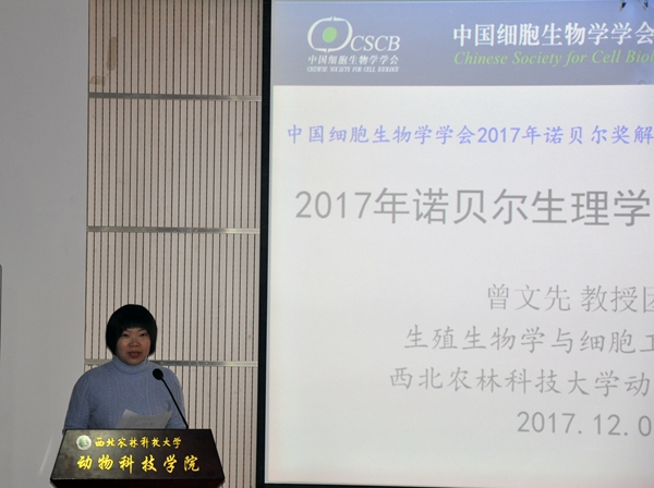 2017年诺贝尔生理或医学奖,颁发给了三位美国科学家——杰弗里·霍尔、迈克尔·罗斯巴什和迈克尔·杨,以表彰他们发现了生物体昼夜节律的分子机制。为了使广大师生更好地了解此项科研成果,以及其对自然科学研究的深远影响,12月2日,由中国细胞生物学学会主办,陕西省细胞生物学学会协办,海角网 生殖生物学与细胞工程研究团队承办的“2017年诺贝尔生理学或医学奖解读”科普讲座在学院107报告厅举行。