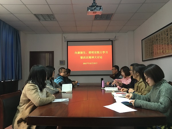 康振生教授和邵明安研究生当选院士以来,全校上下掀起了学习院士精神的浪潮。李兴旺书记在庆祝康振生、邵明安荣膺两院院士座谈会上提出的“扎根杨凌、胸怀社稷;脚踏黄土、情系‘三农’;甘于吃苦、追求卓越”的西农精神,让全校师生为之振奋。为了响应学校号召,研究生第八党支部于12月15日下午开展“向康振生、邵明安院士学习暨西农精神大讨论”活动,学习院士事迹,领悟西农精神。