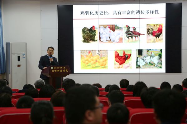3月5--6日,应邀来海角网 做2018年国家自然科学基金预评审的国家蛋鸡产业技术体系首席科学家,中国农业大学杨宁教授,5日下午在104会议室与动科及动医学院相关教师就蛋鸡产业化问题进行了座谈交流。6日下午在学院107会议室作了题为“鸡基因组分析与分子育种”的学术报告。报告会由凌飞副院长主持,学院师生120多人聆听了报告。