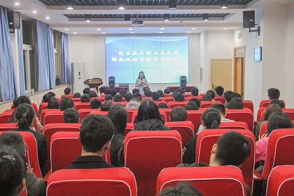 “我们都是神枪手,每一颗子弹消灭一个敌人,我们都是飞行军,哪怕那山高水又深。”耳熟能详的抗日歌曲蕴含着深刻的抗战精神。为提升学生思想觉悟,增强爱国意识,推进思想政治教育。近日,由动科学院承办的百场素质教育报告会之“抗日救亡歌曲在民族解放运动中的重要作用”于107会议室举行,西安电子科技大学周伟教授应邀担任主讲人,我校公共艺术教育中心数位教师与同学们一同参与聆听。