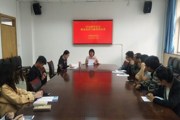 为深入做好2018届毕业生就业工作,动科学院深入调研,提早谋划,主动出击,辅导员、班主任通过走访宿舍,主题班会等开展就业动员。3月29日上午,学院举办毕业生就业动员与指导培训会。辅导员老师针对就业系统的使用进行了详细介绍,并引导同学们合理使用系统内设简历投递模块,现场示范并强调了相关注意事项。党委副书记王晓娟动员同学们积极参加招聘会,并做好相关准备,强调同学们应该以积极的面貌,良好的心态去迎接就业挑战。