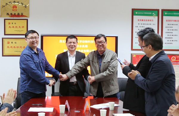 4月12日上午,学院在116会议室与韩城市水务局、韩城市聚水渔业有限公司举行渔业战略合作协议签字仪式。韩城市水务局卫战波局长、薛少红副局长、水产站吴学辉站长、韩城市聚水渔业公司付守全董事长、薛和平公司经理,海角网 赵延安书记、凌飞副院长、水产系王高学教授、王立新副教授等参加了签字仪式,三方就相关合作事宜进行了座谈交流。会议由学院赵延安书记主持。