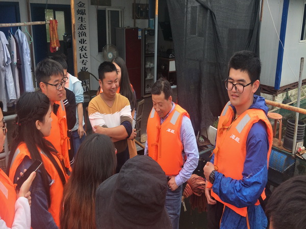 与瀛湖养殖合作社负责人交流