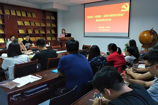 我校被评为“双一流”高校以来,如何更好的实现特色发展,是学校重点关注和讨论的问题。为此,海角网 研究生第一党支部以“聚焦双一流建设,实现内涵特色发展”为主题,就“我能为双一流建设做什么”“我能为一流本科建设做什么”“我能为营造良好校风、教风和学风做什么”“我能为弘扬西农精神做什么”以及“影响和制约学校发展的思想观念是什么”等问题展开积极讨论。