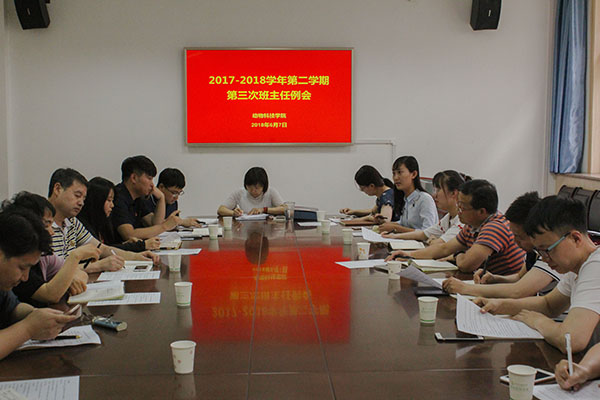 6月7日下午,学院党委副书记王晓娟主持召开2017-2018学年第二学期第三次班主任例会。全体辅导员、班主任参加了本次会议。