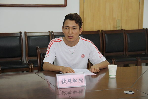 草业1601班孜白旦·亚力买买提同学简要介绍了自身情况后,对新棉农牧有限公司袁军管董事长的资助和学院的支持表示了感谢。“我或许不是娇嫩的花朵,却要做坚毅的小草,破土而出,顽强生长。”她表示,当今社会正是因为袁董事长等爱心人士无私的帮助,贫困大学生们才有了成才的机会,自己一定不负国家、社会、家庭的期盼,刻苦学习、感恩社会、报效祖国。动科1602班欧珠加措同学表达了对凌霖科生态工程有限公司李保宏董事长和学院领导、老师的感谢之情。“我的汉语不太好,不能充分表达内心的激动和感谢。非常感谢您和学院对我无私的关怀和帮助,我一定努力学习,不辜负大家的期望!”他表示到。